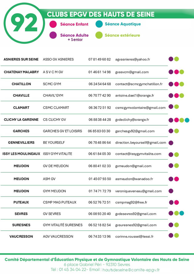 Le département des Hauts-de-Seine compte 17 clubs affiliés à la FFEPGV.